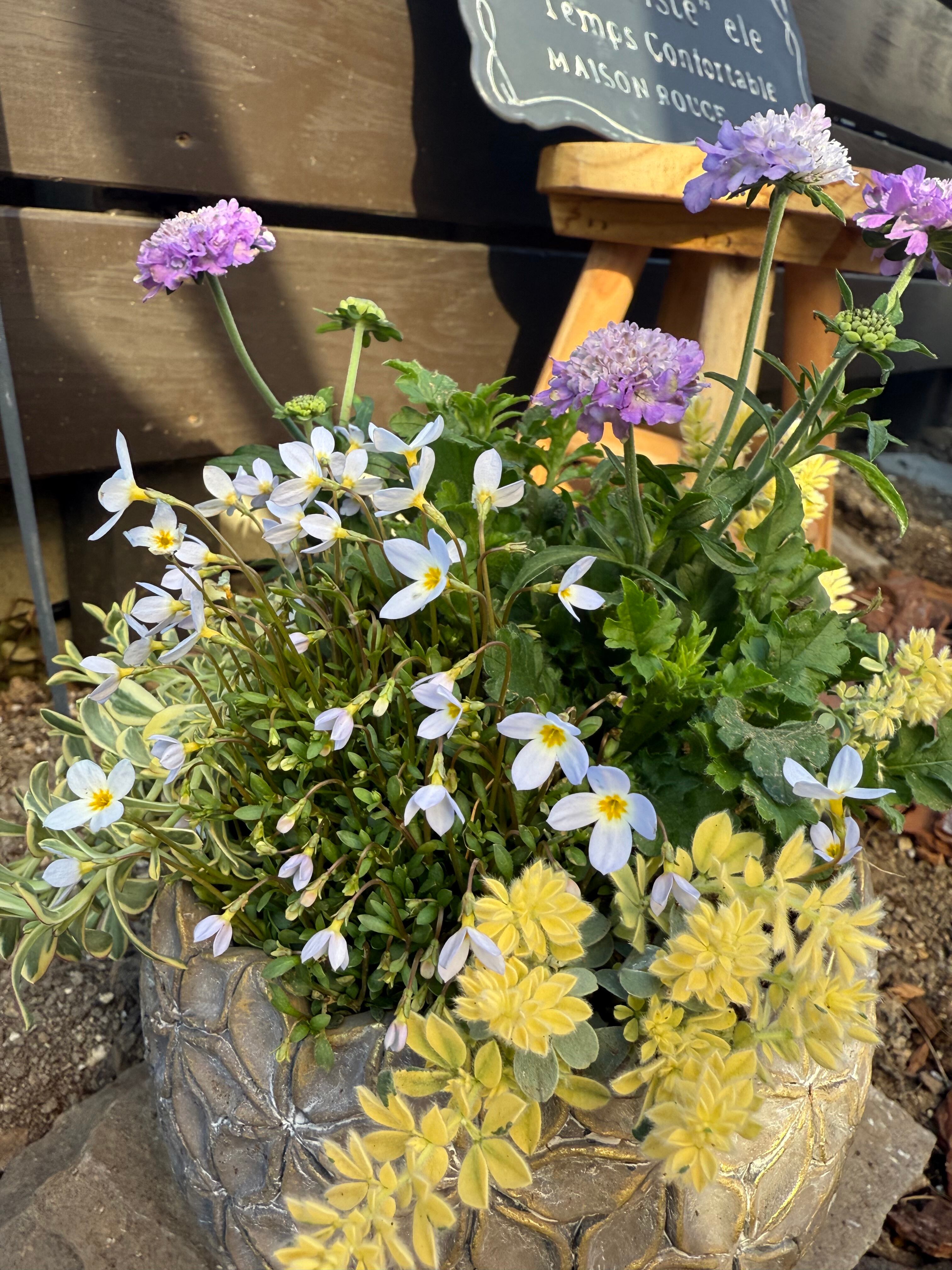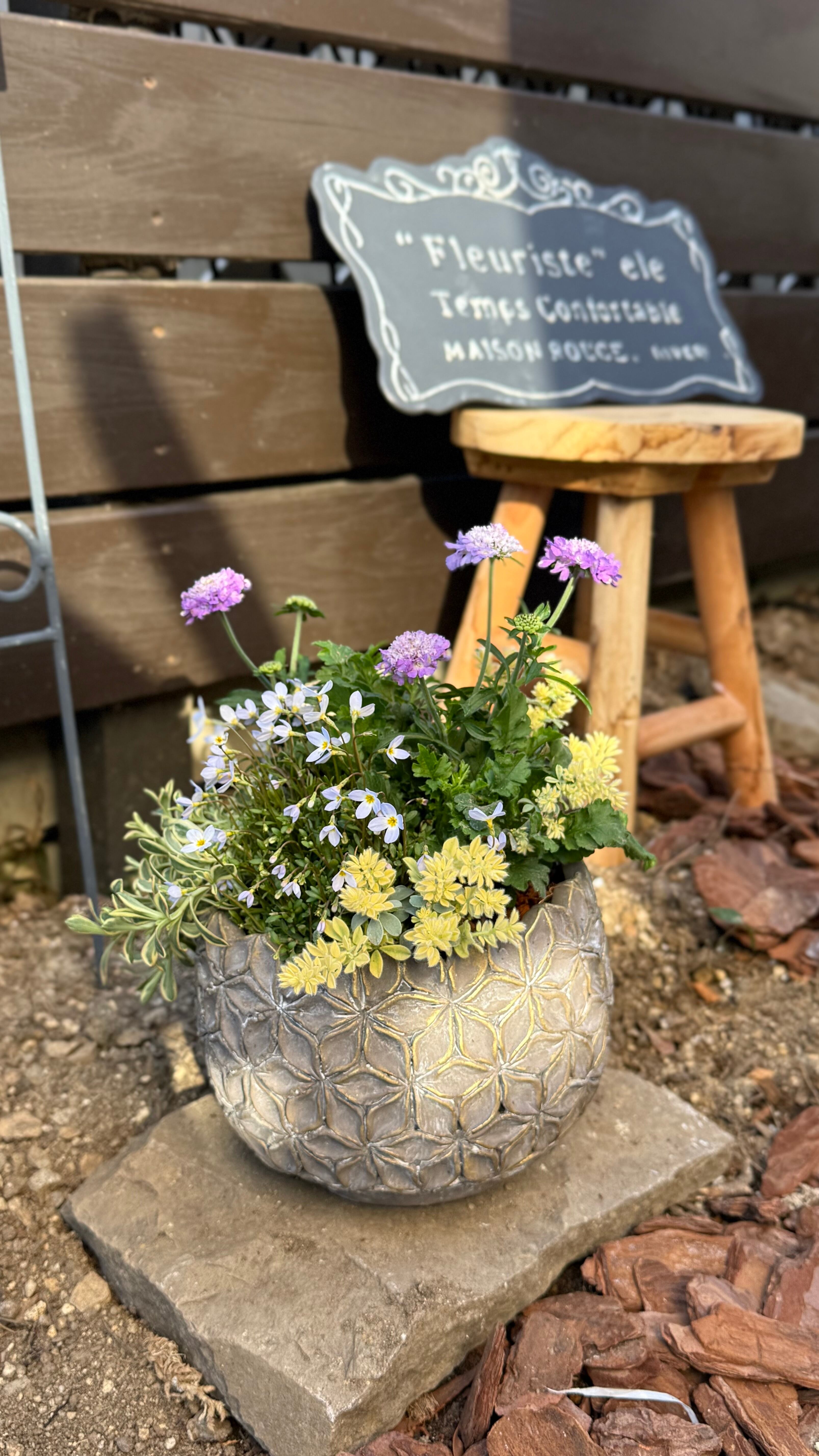 この寒い時期でもナチュラルで可愛い寄せ植えです。お庭のアクセントにも。春がやってきます♪